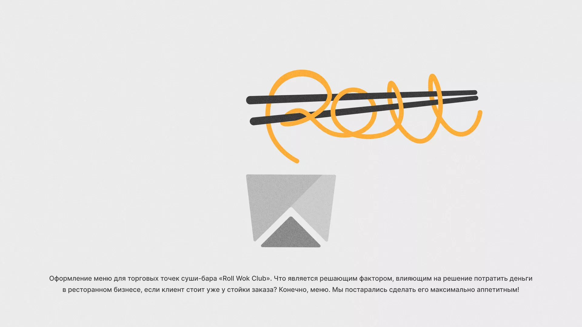 Оформление меню для торговых точек суши-бара «Roll Wok Club» в Бикине. Что является решающим фактором, влияющим на решение потратить деньги в ресторанном бизнесе, если клиент стоит уже у стойки заказа? Конечно, меню. Мы постарались сделать его максимально аппетитным!